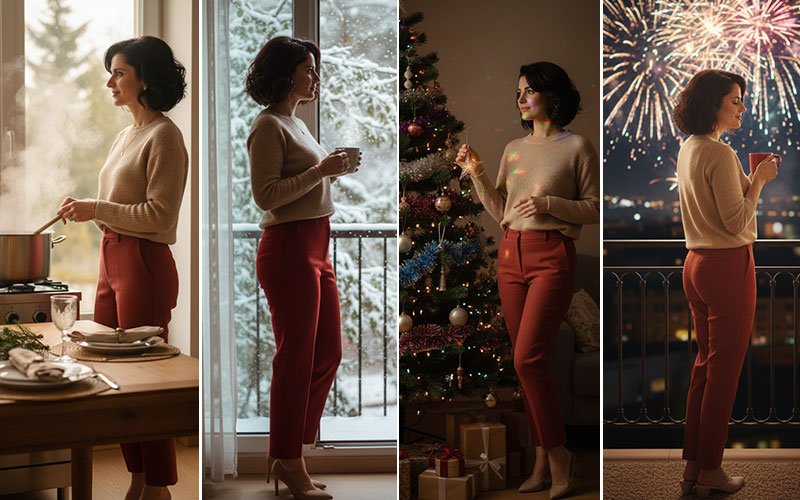 Amacım, yılbaşı döneminin enerjisini yansıtan, pratik ve ilham verici bir başlangıç noktası sunmak. Kendi içerik tarzınıza göre düzenleyebilir, geliştirip kişiselleştirebilirsiniz. Örneğin kıyafet tercihi ya da olmak istediğiniz ortamda değişiklikler varsa kendinize göre uyarlayabilirsiniz.