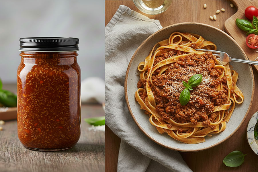 Zeytinyağını ısıtıp soğan, havuç ve kereviz sapını kavurun. Sebzeler yumuşayınca sarımsağı ekleyip kokusu çıkana kadar birlikte çevirin. Kıymayı ekleyip yüksek ateşte suyunu çekene kadar kavurun. Kavrulan kıymaya sütü ekleyip karıştırın biraz pişsin. Üzerine salça, domates sosu/domates ve baharatları ekleyip kısık ateşte pişmeye bırakın.