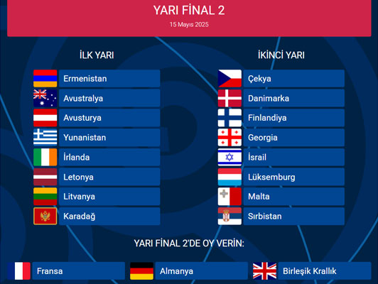 Kesin yayın sırası (yarı finallerde hangi sırada çıkacakları) ise Eurovision 2025’in yapımcısı İsviçre Yayın Kurumu (SRG SSR) tarafından belirlenecek ve EBU tarafından onaylanacak.