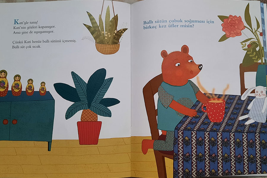 Her sayfada uyumak istemeyen minik hayvanları yataklarına yatırıyoruz. Çocuklar sonraki sayfada kendilerini ne beklediği merak ediyor ve kitabı keyifle dinliyor. Hayvanları uykuya çocuğunuzla birlikte hazırladıkça o da uyumaya yavaş yavaş yaklaşıyor.