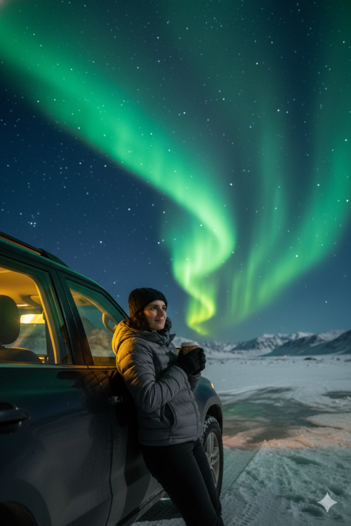 Sen de benim gibi gidip göremediysen hayaliyle başlamaya ne dersin? Bu yazıda 4 farklı prompt var. İstediğini uyula, kendini Kuzey Işıkları seyahatinde hayal et. Kim bilir belki bir gün gerçekten orada olursun.