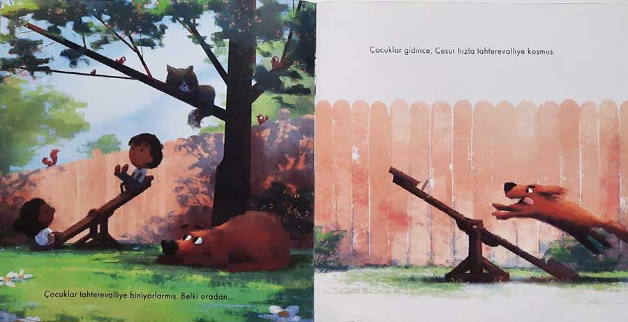 Çizimler konu ile uyumlu ve güzeldi ancak çizim tarzında dijital boyama gibi bir tarz kullanılmış. Pastel geçişler hafif bulanık görseller oluşturmuş bu da çocuklar için çekiciliği azaltabiliyor. En azından bizde böyle oldu diyebilirim. Sizde farkı şekilde olabilir tabi ki, belki de bu tarzı sizin çocuğunuz daha çok sevecektir.